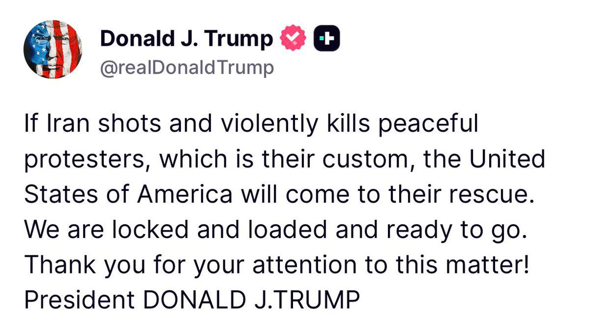 This theory is bolstered by the fact that Trump- fresh from his visit with Benjamin Netanyahu, where he pushed him towards a new war with Iran - wrote on Truth Social, “If Iran shots and violently kills peaceful protesters, which is their custom, the United States of America will come to their rescue. We are locked and loaded and ready to go. Thank you for your attention to this matter”, suggesting that the U.S. will again bomb Iran if they crack down on protestors.
