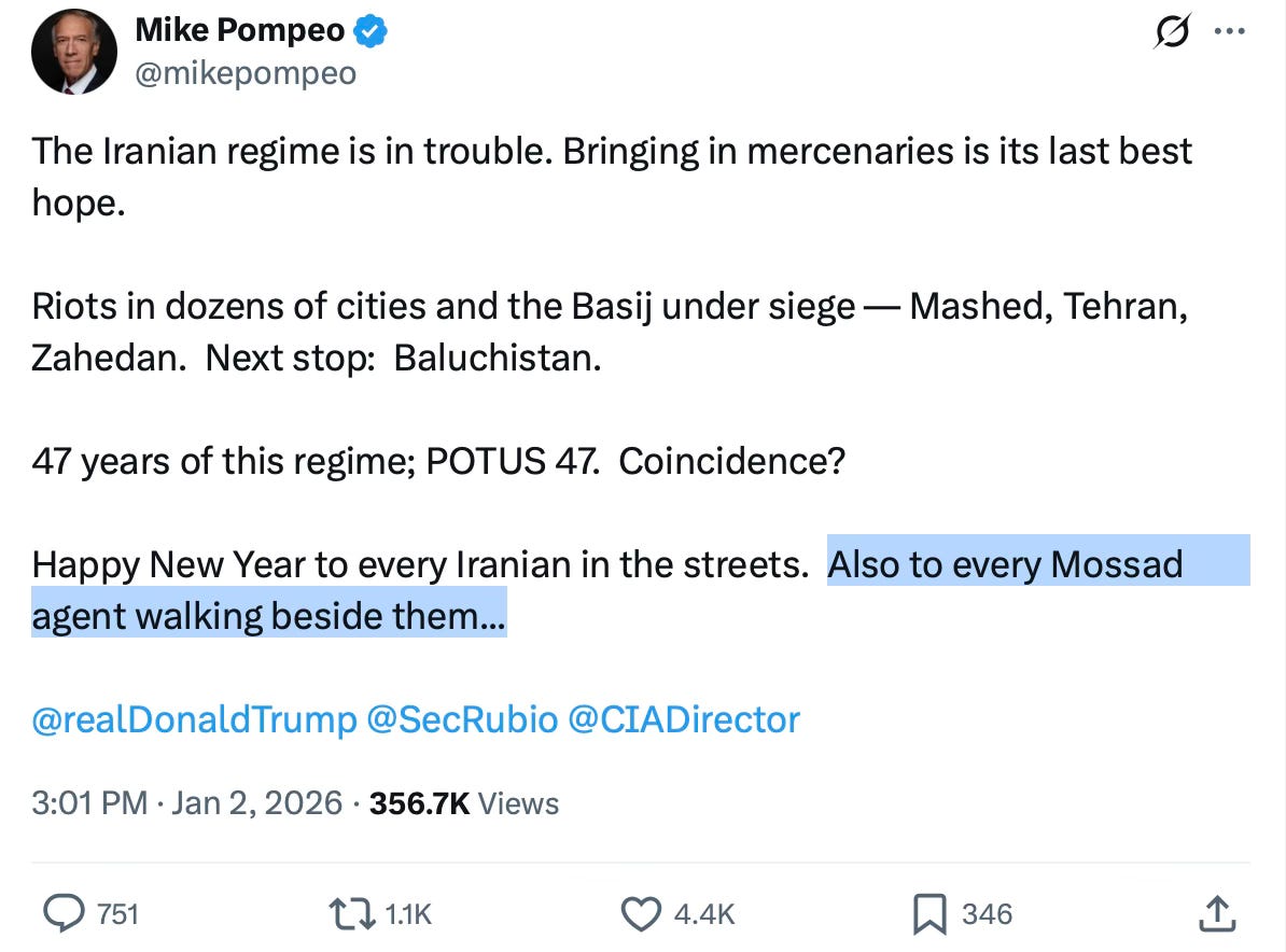 Why Is Mike Pompeo And The Mossad Publicly Announcing Mossad Involvement In Iranian Protests?